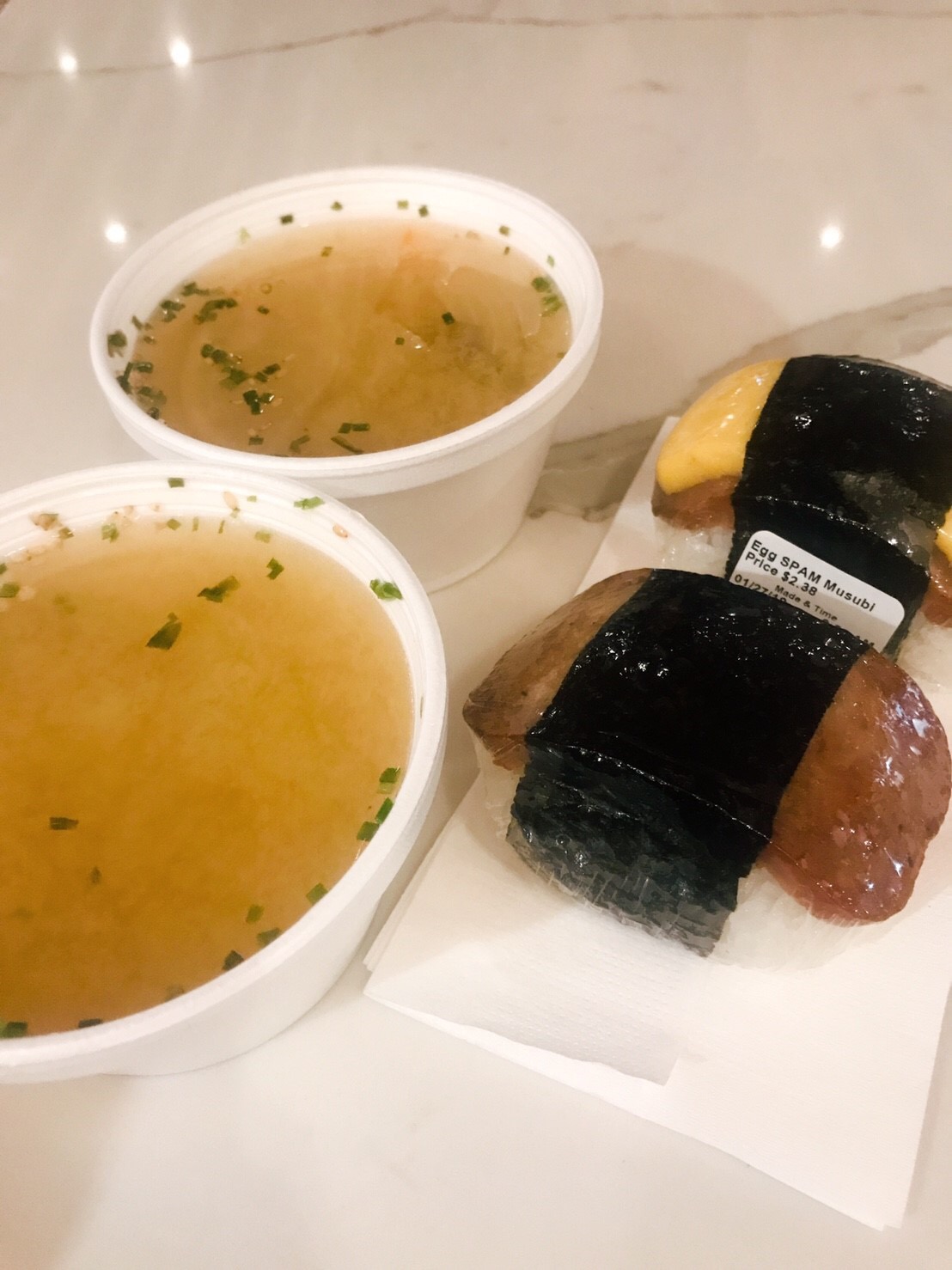 豚汁とスパムむすびを。