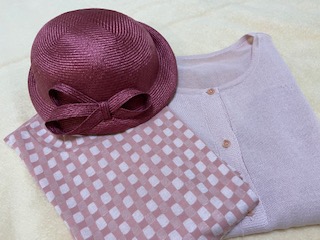 せっかくの藤色の上に冬用のカーディガンを