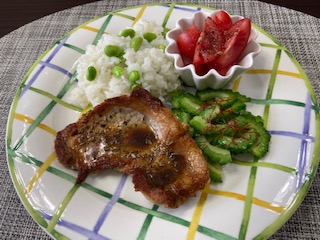 添えのゴーヤは仮住まい時代に(笑)覚えたもの。
