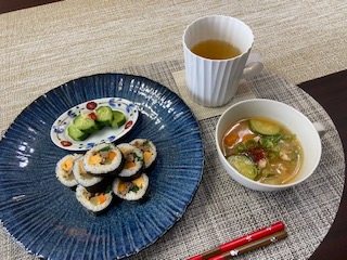 キンパと韓国風味噌汁。どちらも