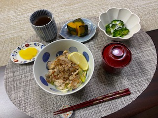 ベーコンエッグ丼、豚キムチ、常夜鍋、