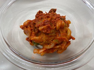 水気を絞って、味噌と粉唐辛子で