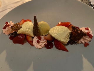 ピスタチオムースに苺のゼリーや
