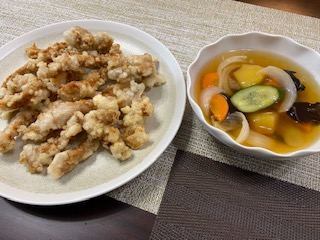 豚肉の唐揚げは隠し味にカレー粉。