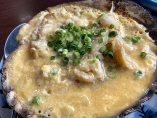 貝焼き味噌。帆立の貝殻を