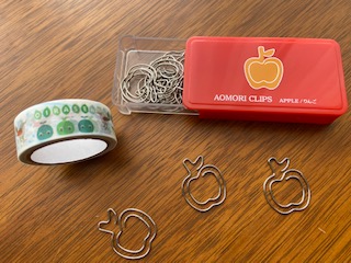 リンゴのクリップと苔玉ちゃんの