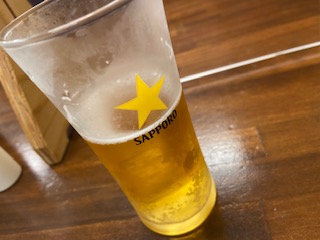 まずはビールから。背徳感も