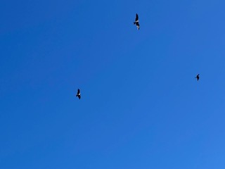 トンビは悠々と大空を飛び。