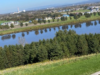 遠くに見えるのがモエレ山、