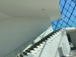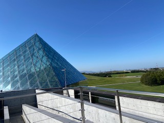 遠くの三角はガラスのピラミッド。