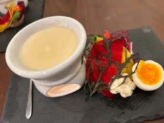 半熟卵と焼き玉ねぎもソースに