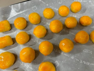忍ばせています。卵の黄身を
