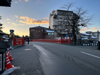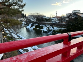 高山を代表する赤い橋、宮川に