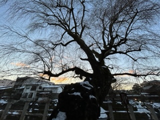 袂にある桜の木は桜の開花宣言の
