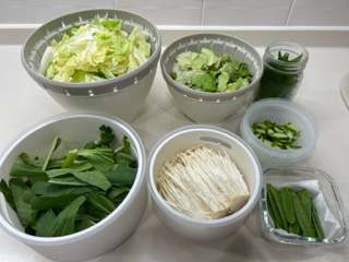 青梗菜はいつもと変えて、細長に