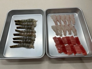 鮪と鯛の紅白寿司。すぐに