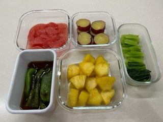 どれも容器に移します。油揚げは