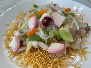 ある日のお昼、皿うどんです。