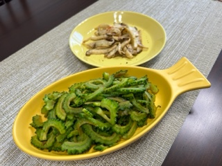 つけ合わせはゴーヤ炒めと