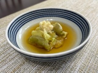 焼き茄子のお浸しは小鉢です。