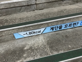 階段に表示された消費カロリー。