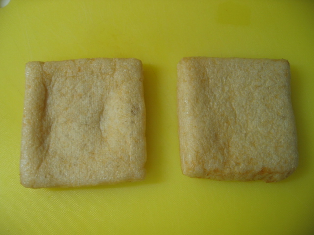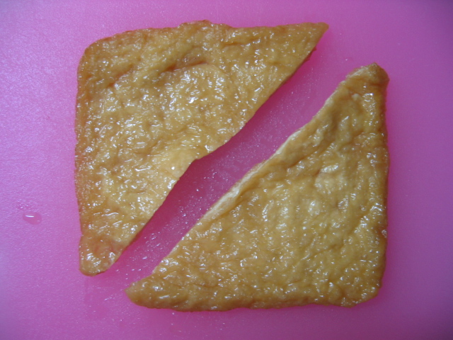 油揚げは半分を裏返しにして
