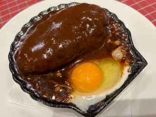 ハンバーグ。落とし卵は好みの
