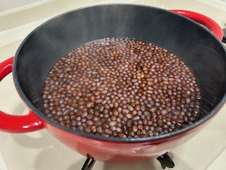 小豆をことことと炊く。