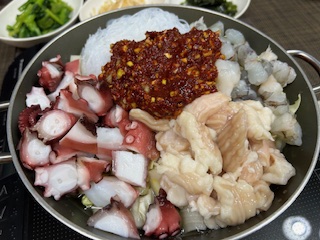 ヤンニョム投入。あとはグツグツと