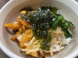 ごはんにかけて、ナムルを添え、