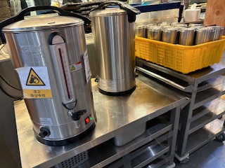 ポットにお湯を汲んできて、