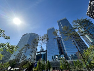 高層ビル群を横目に歩きます。