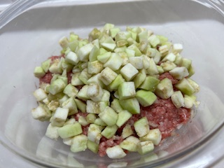 おなすたっぷりのミートローフを