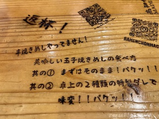 テーブルには焼きめしの食べ方。