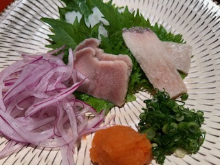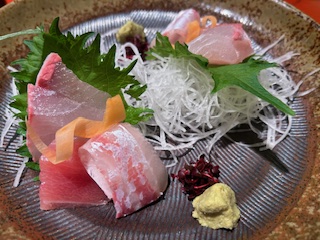 旬の刺身三種盛り。
