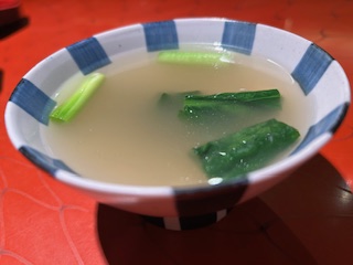 おいしいスープとお漬物で