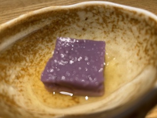 突き出しは紫芋のお豆腐。