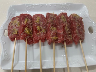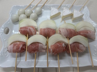 鶏肉で巻いて焼くか。