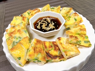 豚バラとニラと玉ねぎのチヂミ。