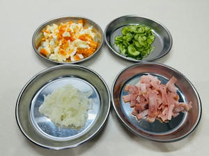 ゆで卵は粗くカット。きゅうりは
