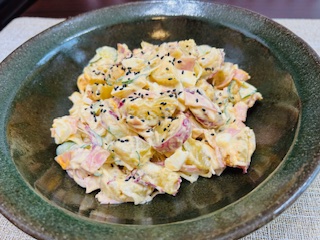 さつまいものサラダを作りましたのよ。