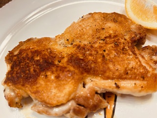 こんがり焼けた鶏肉はレモンを