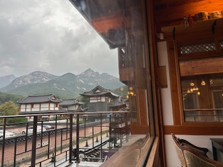 窓から北漢山と韓屋が見渡せます。