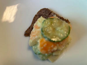 海老。三角形は茹で牛肉です。