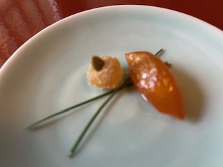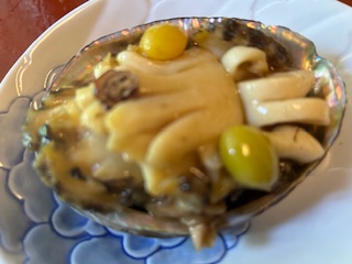 アワビの煮物。美しい飾り切りは