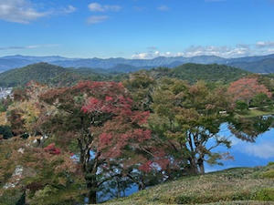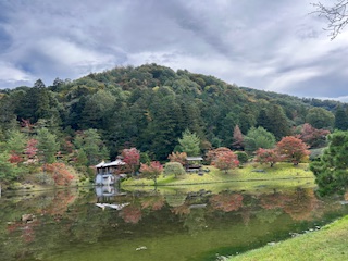 木々が色づいて、池の水面に