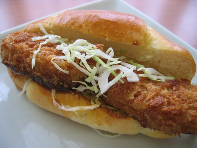 コロッケを挟みました。
