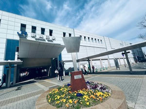 駅の前には大きなコテのオブジェ。
