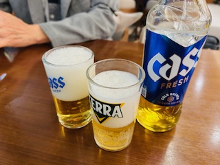 韓国ビールで乾杯です。