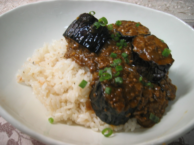 今夜は揚げなすのドライカレーにしました。